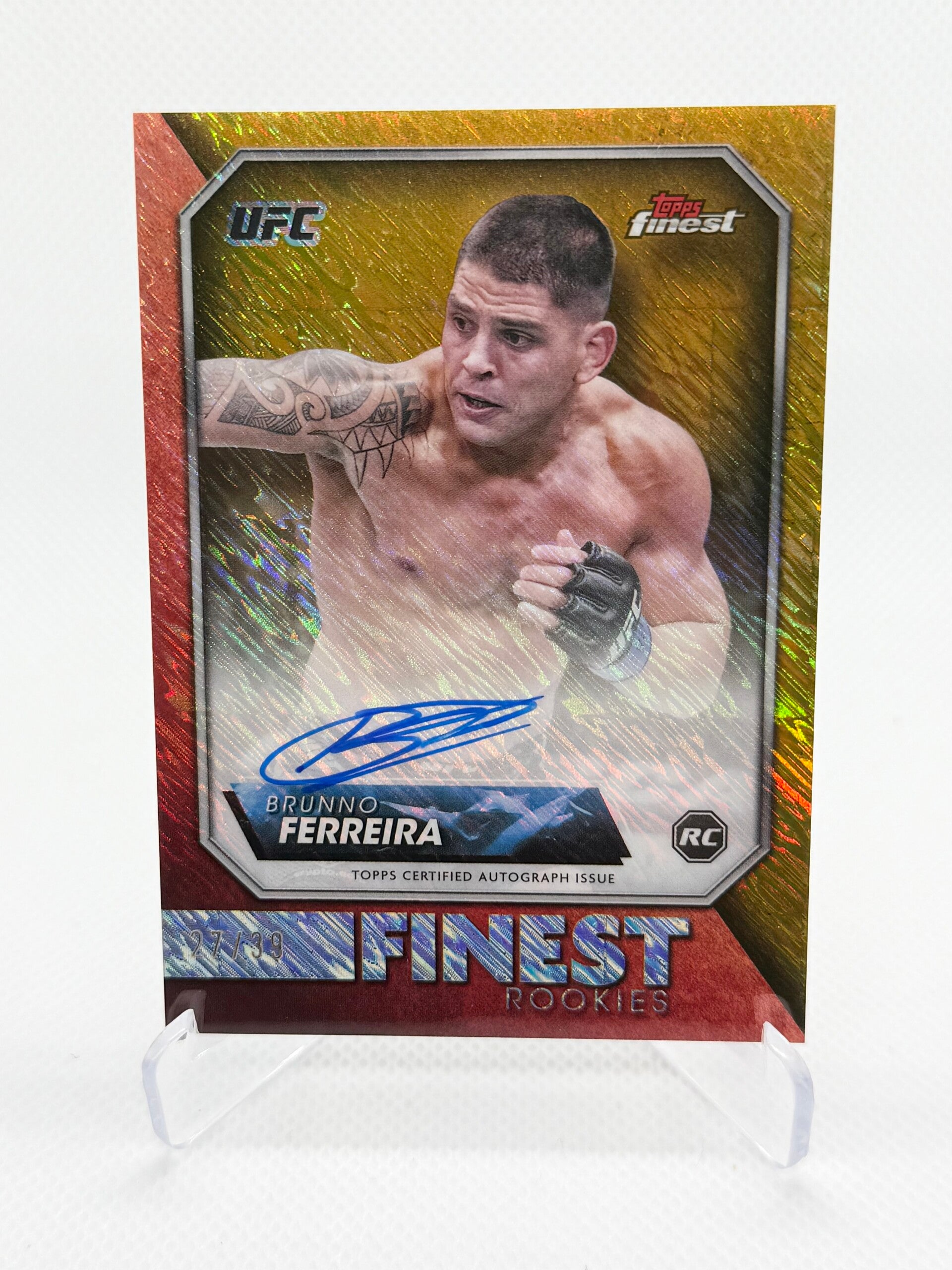 BRUNNO FERREIRA 2024 TOPPS FINEST UFC ROOKIE FINEST GOLD SHIMMER AUTO 27/39 #RFA-BF